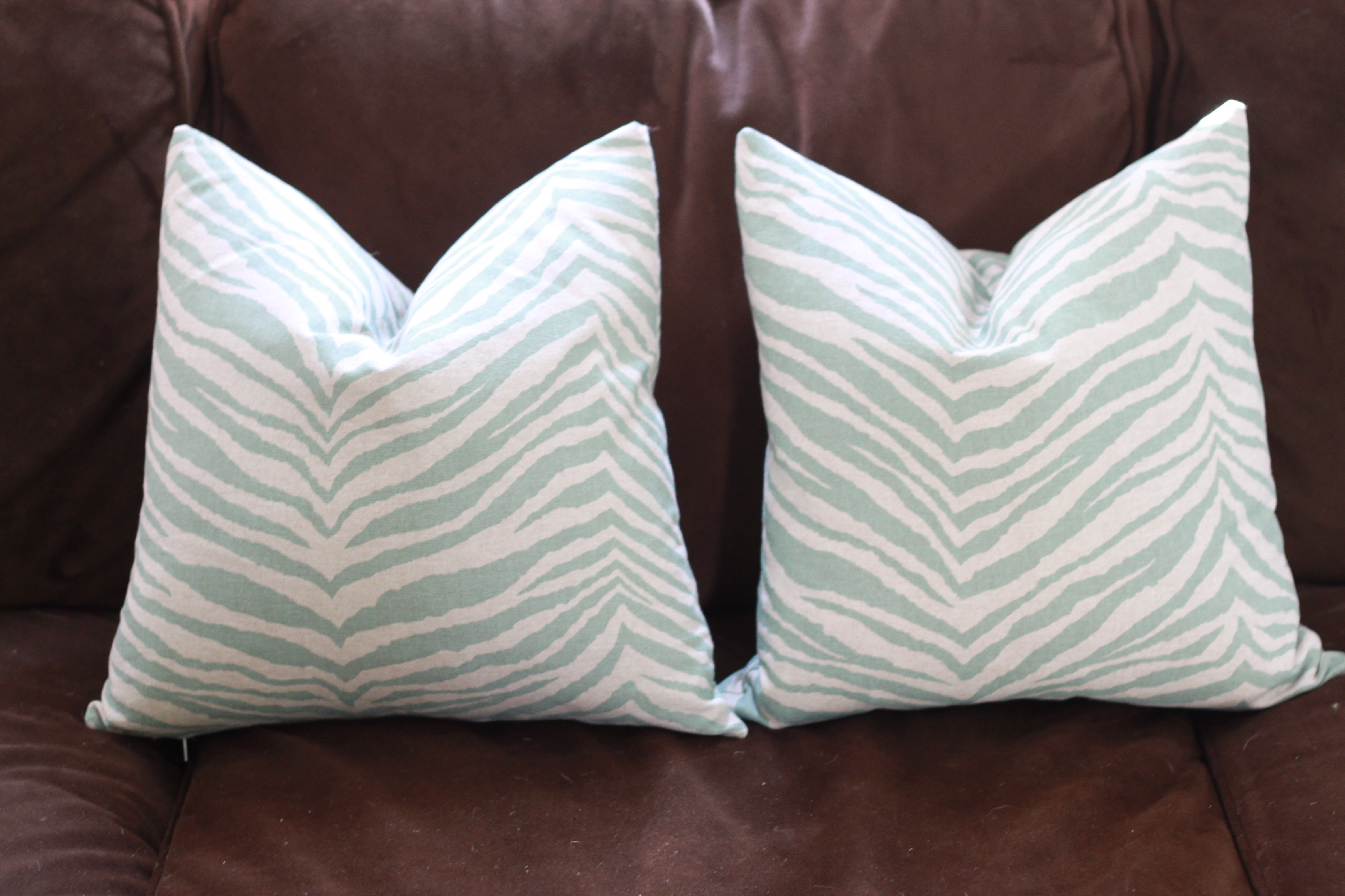 – my last bit of advice is to buy good inserts that you can keep for a long time.  i prefer down, and i picked mine up at nell hill’s.  my 16×16 inserts were $16, but i’ll probably have these forever, and all i have to do is whip up a new pillowcase when i get bored with these.  i’d say each pillowcase cost me about $5 between fabric and the zipper, which is a bargain in my book!